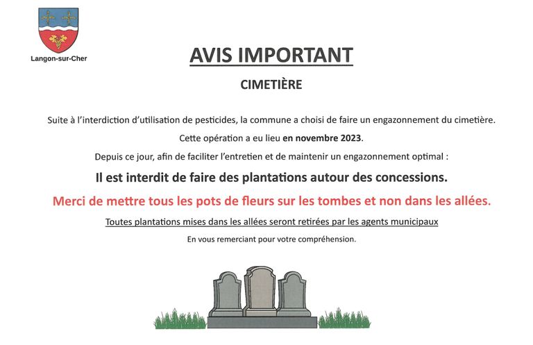 Merci de mettre tous les pots de fleurs sur les tombes et non dans les allées.